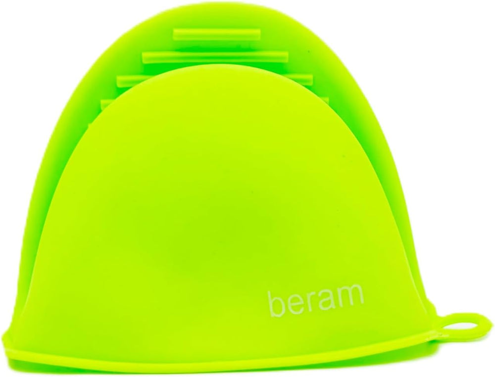 BERAM Silicone Mini Oven Mitts, Set of 2, Kitchen Pot Holders, Heat Resistant, Small Kitchen Mitts, Air Fryer Mitts Mini, Pot Pinch Grip for Cooking and Baking (Green)