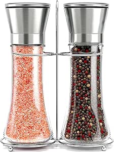 BERAM Salt and Pepper Grinder Set, Stainless Steel Mills with Tall Glass Body, Manual, Adjustable Coarseness for Sea Salt, Black Pepper, Spices, Multipurpose, Perfect for Home Kitchens & Restaurants