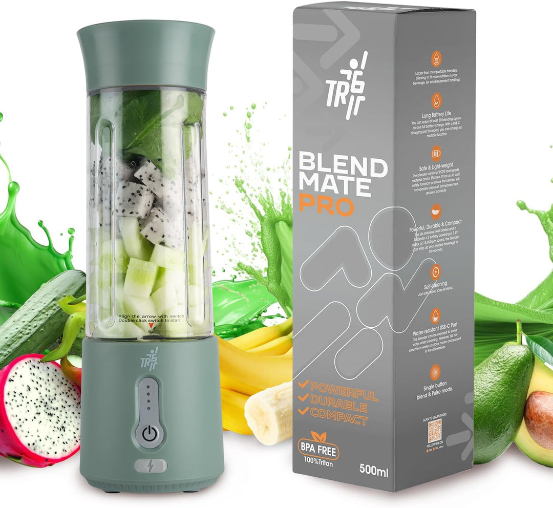 TR6 Blendmate Pro Portable Blender for Smoothies, Protein Shakes & Ice Crushing – 500ML Capacity, Tritan Material, 4000mAh Battery, USB-C Port with Handle Lid