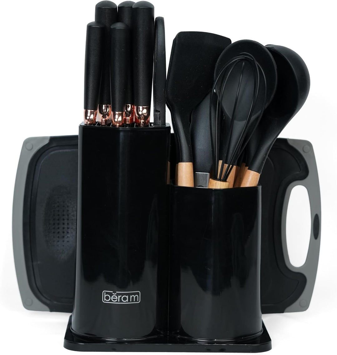 BERAM 19 Pieces Knife Set for Kitchen Cooking Utensils Set Tongs Spoon Spatula & Turner Made of Heat Resistant Silicone with Wooden Handles Non-Stick Kitchen Knife Sets