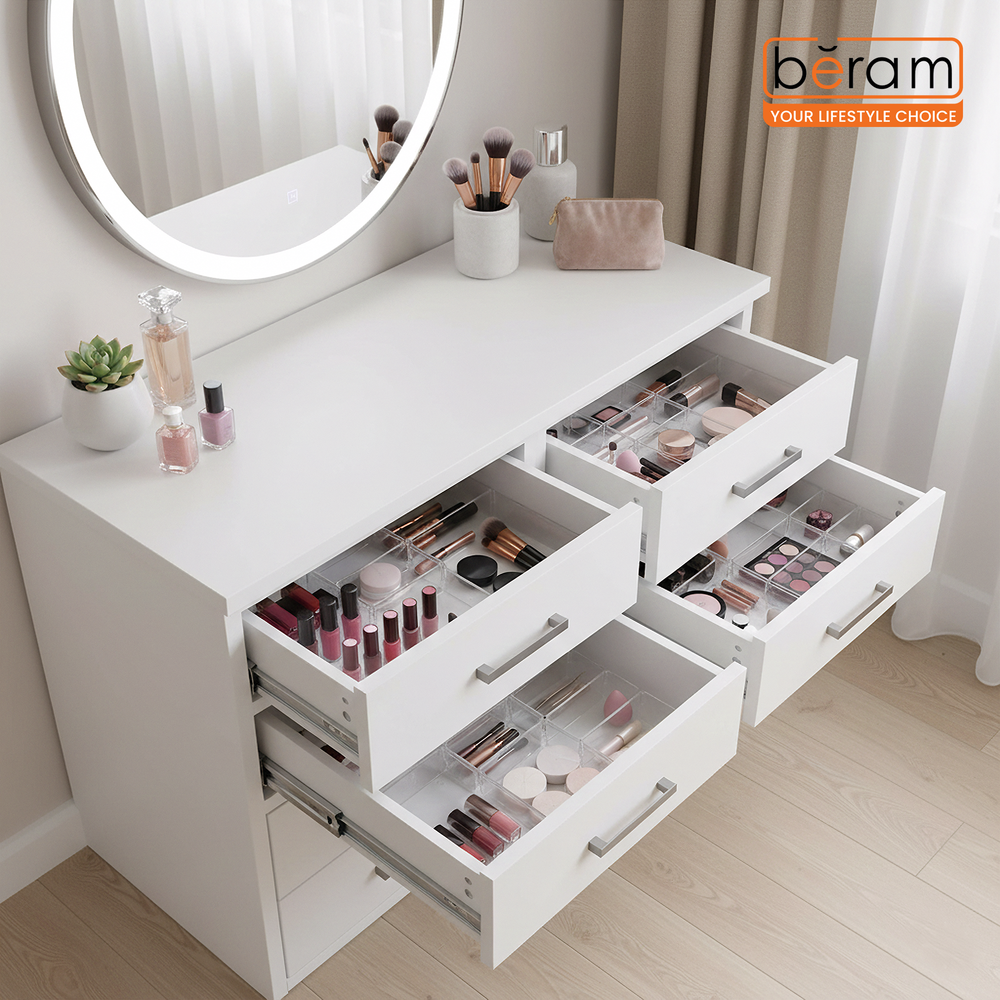 Beram 25PCS Clear Drawer Organizer Set Transparent PET Storage Bins with Non-Slip Base Includes 8 Small 8Medium 6Large 3XL Sizes Stackable Multi-Purpose Containers for Makeup Kitchen Office Bathroom