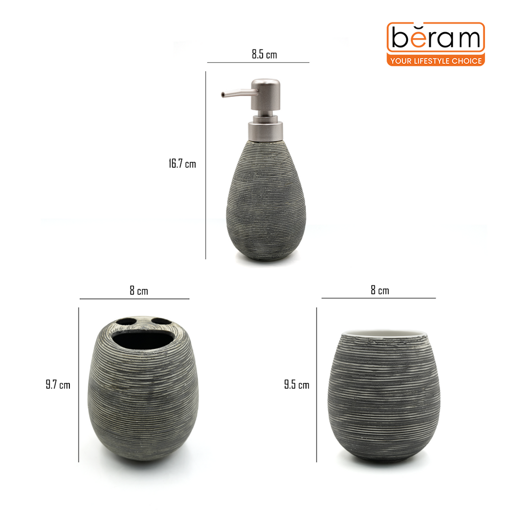 Beram 4 Piece Brown & Grey dotted check Ceramic Bathroom & Kitchen Accessory Set Textured Finish with Soap Dispenser Toothbrush Holder Tumbler & Soap Dish Artistic Handcrafted Look for Contemporary Bathrooms