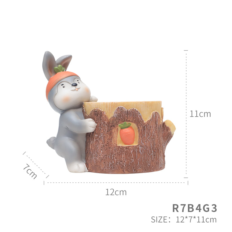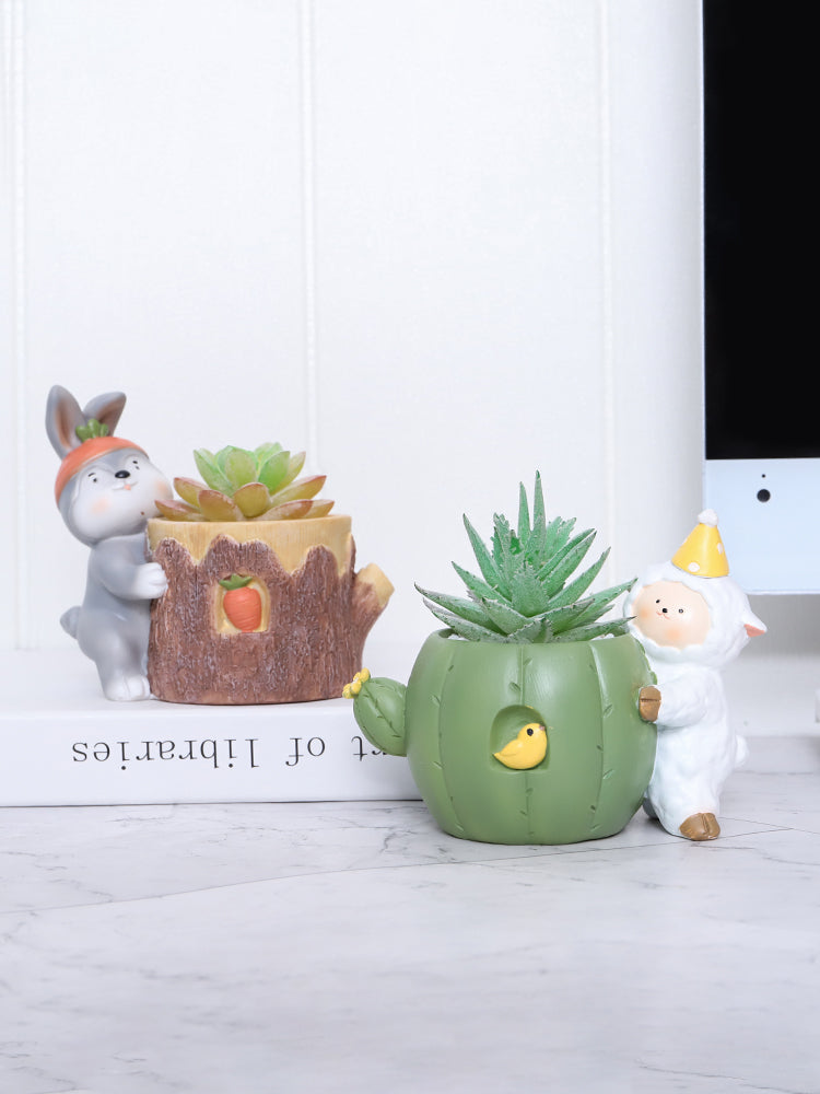 Beram Animal Fruit Harvest Flower Pot Bunny Carrot and Bear Honey Bee Set Polyresin Cute Animal Succulent Planters Decorative Tree Trunk and Honey Pot Vase Desk Flower Pot Pen Pencil Holder Propagator Kit Indoor Outdoor Home Garden Decor