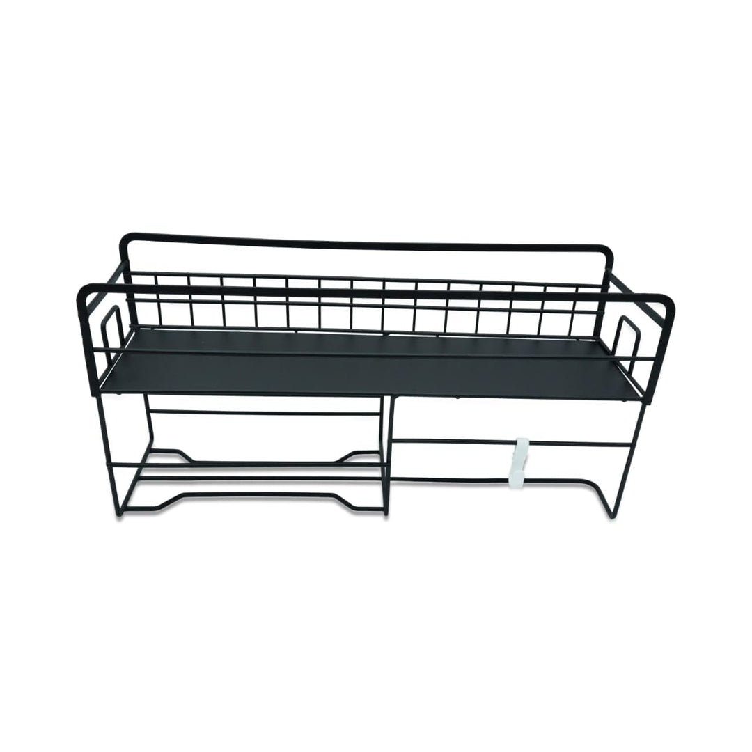 Beram Bathroom Storage Rack with Black Ceramic Rectangular Tray Durable Freestanding Countertop Organizer for Toiletries Bath Essentials and Accessories Modern Space Saving Design