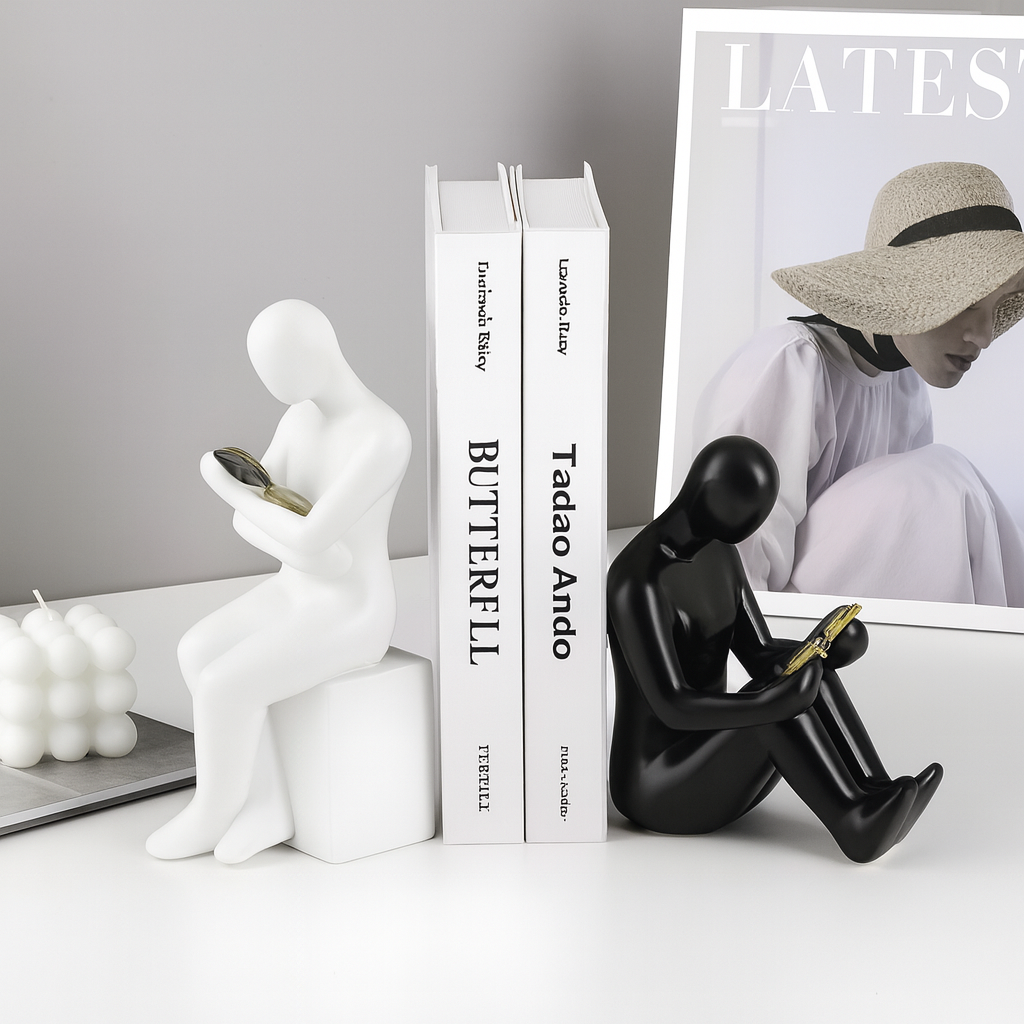BERAM Book Reading Figure Bookends Resin Reader Sculptures Heavy Decorative Book Ends for Shelves Desk and Home Library Modern Minimalist Book Holder Statues for Office and Study Decor