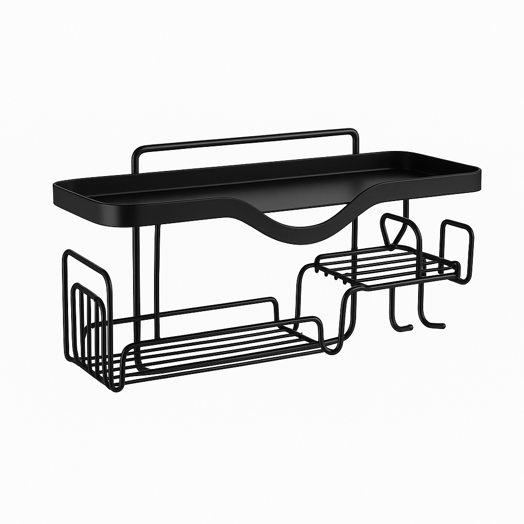 Beram Bathroom Storage Rack with Soap Holder Wall-Mounted Shower Shelf Organizer Rustproof Waterproof Heavy-Duty Caddy for Toiletries Space-Saving Modern Black Rack with Drainage Design