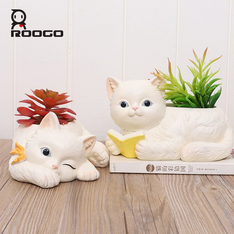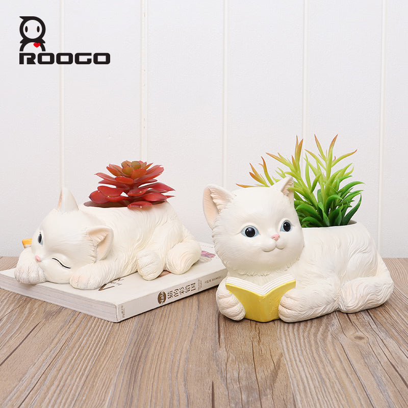Beram Peek A Boo Cat Cartoon Flower Pot Polyresin Cute Cat Succulent Planter Adorable Animal Vase Decorative Desk Flower Pot Pen Pencil Holder Propagator Kit for Indoor Outdoor Home Office Decor
