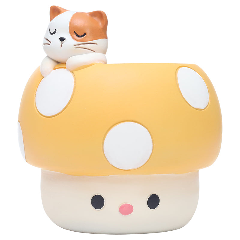 Beram Mushroom Planter Set Panda Sleeping Cat Smiling Cat Cartoon Smiley Polyresin Decorative Flower Pots Cute Animal Succulent Holders with Drainage Hole Indoor Outdoor Home Office Desk Decor Pen Pencil Holder Propagator Kit Gift