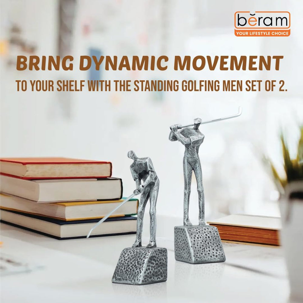 BERAM Golfing Men Set – Black Ceramic Figurine Sculptures, Abstract Golf Statues for Modern Home or Office Decor, Shelf Ornaments & Gift Set for Golf Lovers and Art Collectors