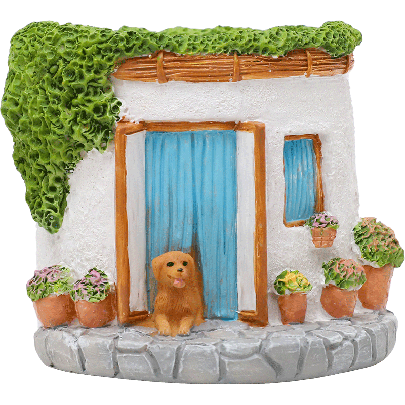 Beram Puppy in Cottage Style Flower Pot Polyresin Decorative Mini House Planter with Cute Dog Design Indoor Outdoor Succulent Vase Home Office Desk Decor Pen Pencil Holder Propagator Kit
