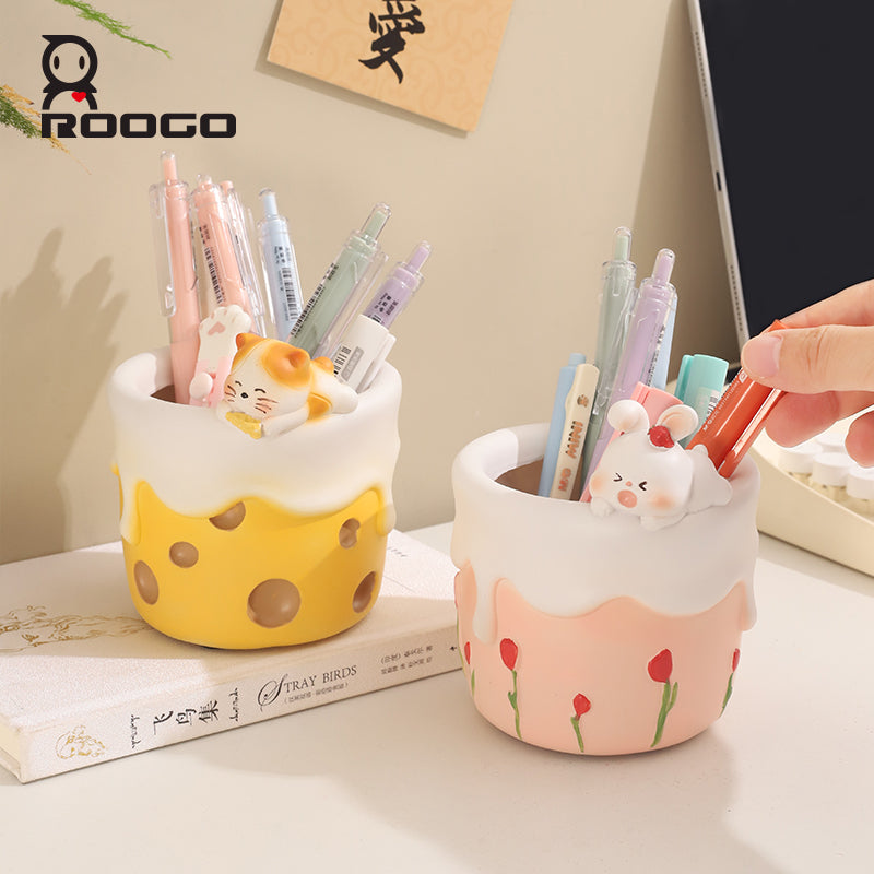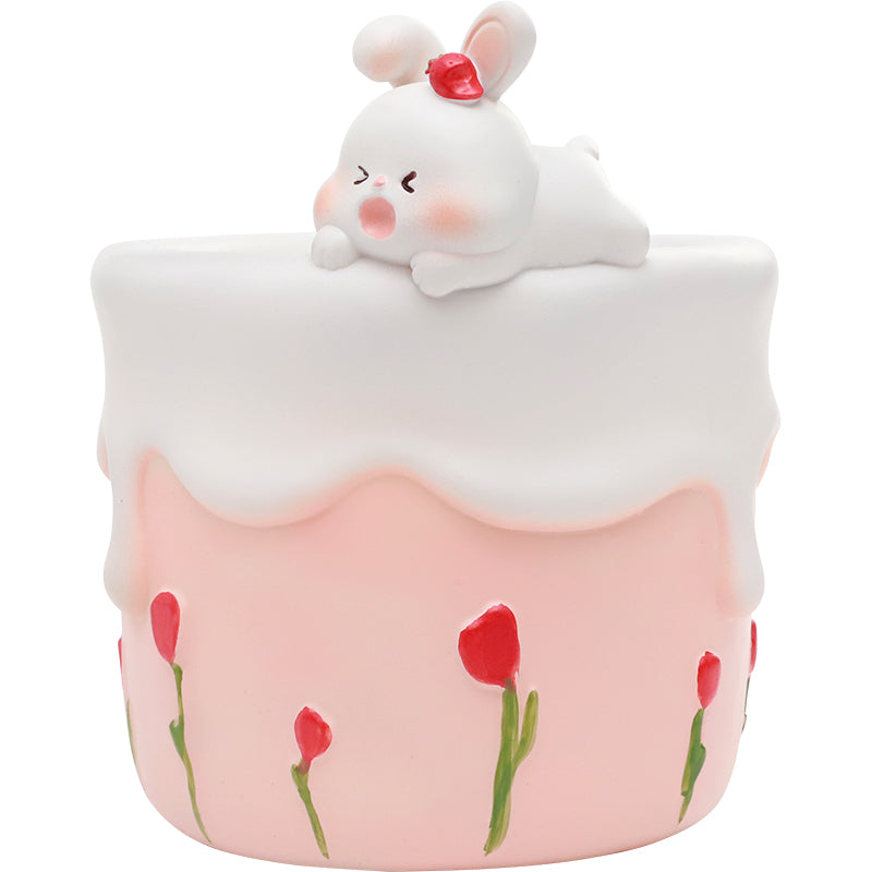 Beram Spring Bunny and Cheese Tiger Planter Set Polyresin Decorative Flower Pots Cute Animal Succulent Holders with Drainage Hole Indoor Outdoor Home Office Desk Decor Pen Pencil Holder Propagator Kit Gift