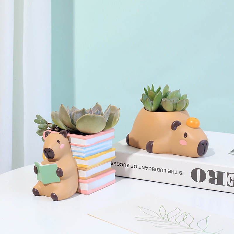 Beram Reading 2Pcs Set Pig and Puppy Design Flower Pot Polyresin Decorative Planter for Succulents Mini Plants Indoor Outdoor Home Office Desk Décor Pen Pencil Holder Propagator Kit