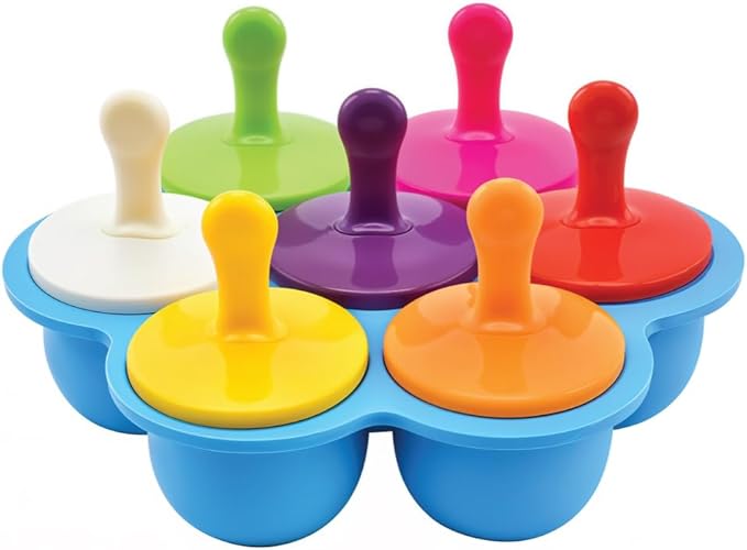 Beram Mini Popsicle Ice Cream Mould Seven Colourful Sticks Healthy Fruit Moulds Pure Silicone Mould with Plastic Sticks Kids Ice Cream DIY Pop Molds BPA Free