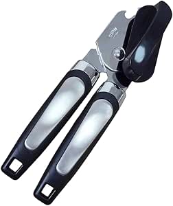 BERAM Manual Can Opener – Heavy Duty Stainless Steel Lid Opening Tool with Curved Handles – Handheld Multiopener with Sharp Blades & Smooth Edge Cutting