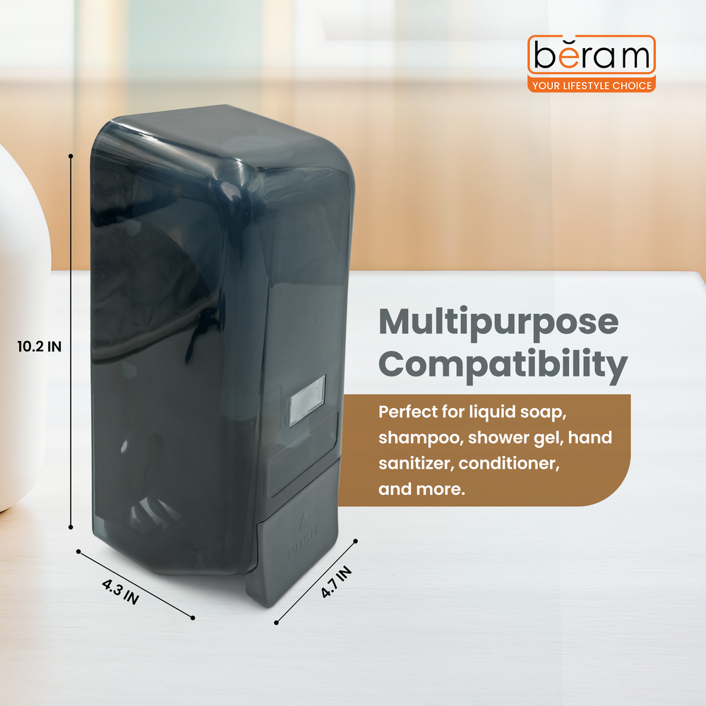 BERAM Wall Mounted Manual Liquid Soap Dispenser 800ml Push Type Shower Gel Dispenser for Bathroom & Kitchen Easy Refill Leak-Proof Design Perfect for Soap Shampoo Hand Sanitizer translucent black