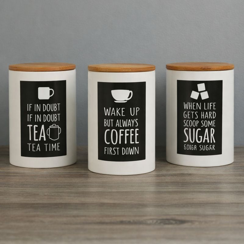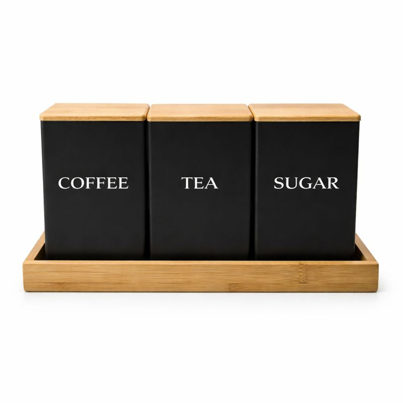 BERAM Metal Tea Coffee Sugar Container Set with Bamboo Lid Airtight Kitchen Storage Jars for Home and Kitchen Tea Box and Coffee Beans Container Set Modern Home Improvement Canisters Black
