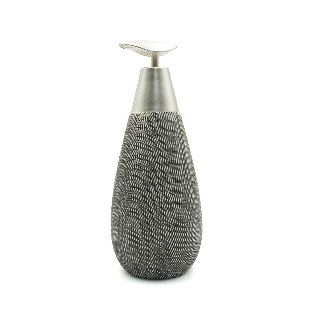 Beram Stripes Ceramic Soap Dispenser Bathroom Accessory Refillable Lotion Pump Bottle with Textured Stripe Design Modern 400ml Kitchen Accessory for Hand Soap Lotion or Sanitizer (Silver and Grey)
