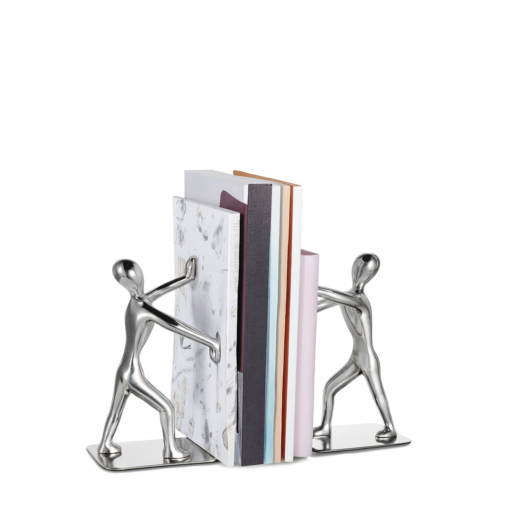 BERAM Push Figure Bookends Set of 2 Heavy Metal Book Ends Modern Human Figurine Design Anti Slip Sturdy Book Holder for Home Office and Library Decor Bookshelf Organizer