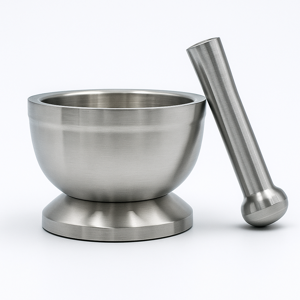 BERAM Pestle and Mortar Set Manual Grinder with Lid Premium Stainless Steel Mixing Bowl for Garlic Spices Herbs Durable Sturdy and Long Lasting with Easy Cleaning (10 CM)