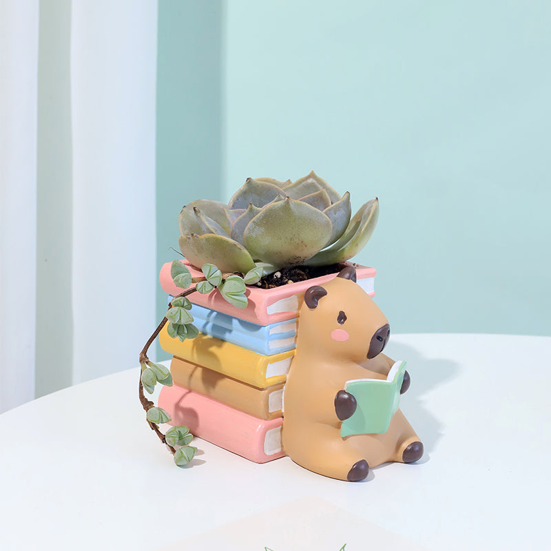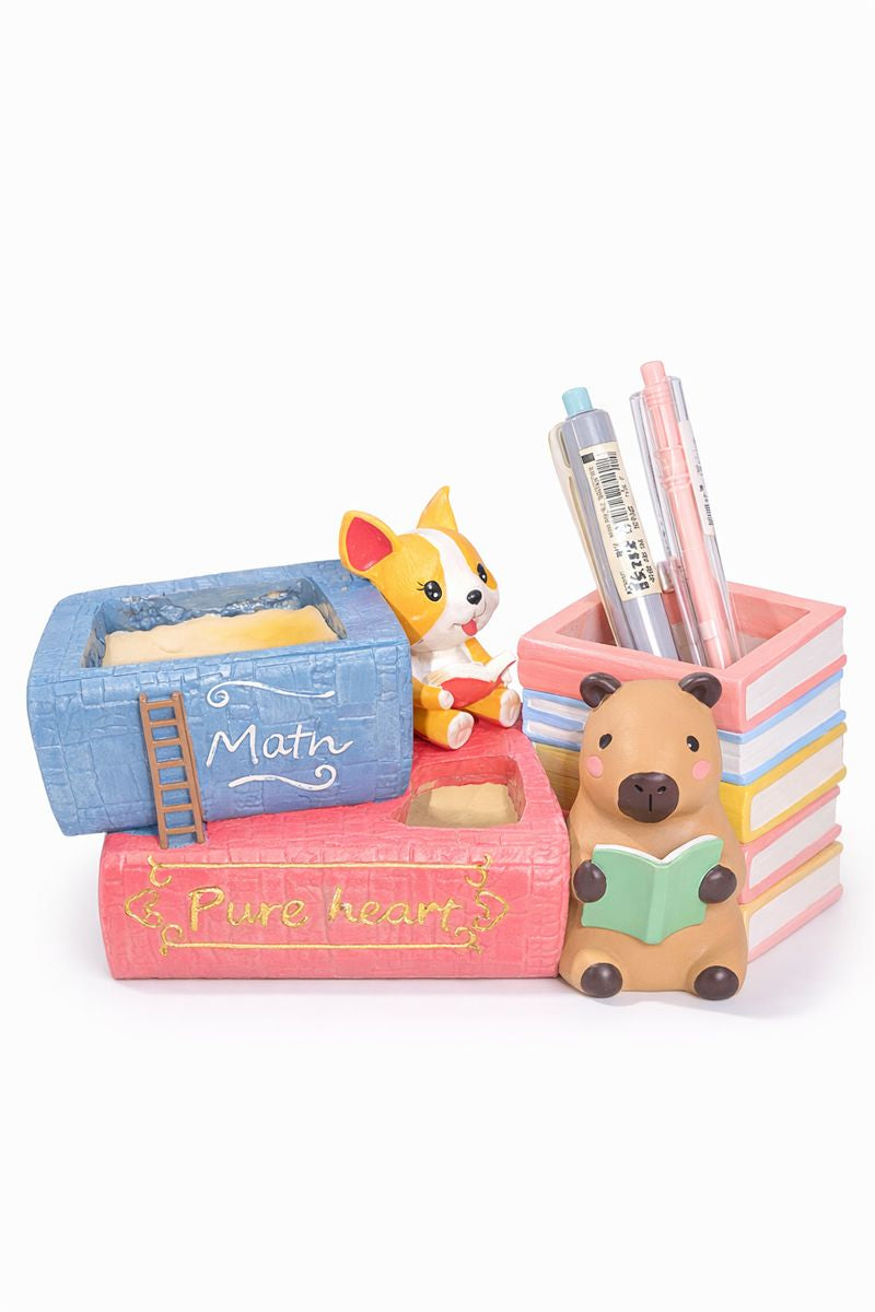 Reading 2Pcs Set Pig and Puppy Design Flower Pot Polyresin Decorative Planter for Succulents Mini Plants Indoor Outdoor Home Office Desk Décor Pen Pencil Holder Propagator Kit
