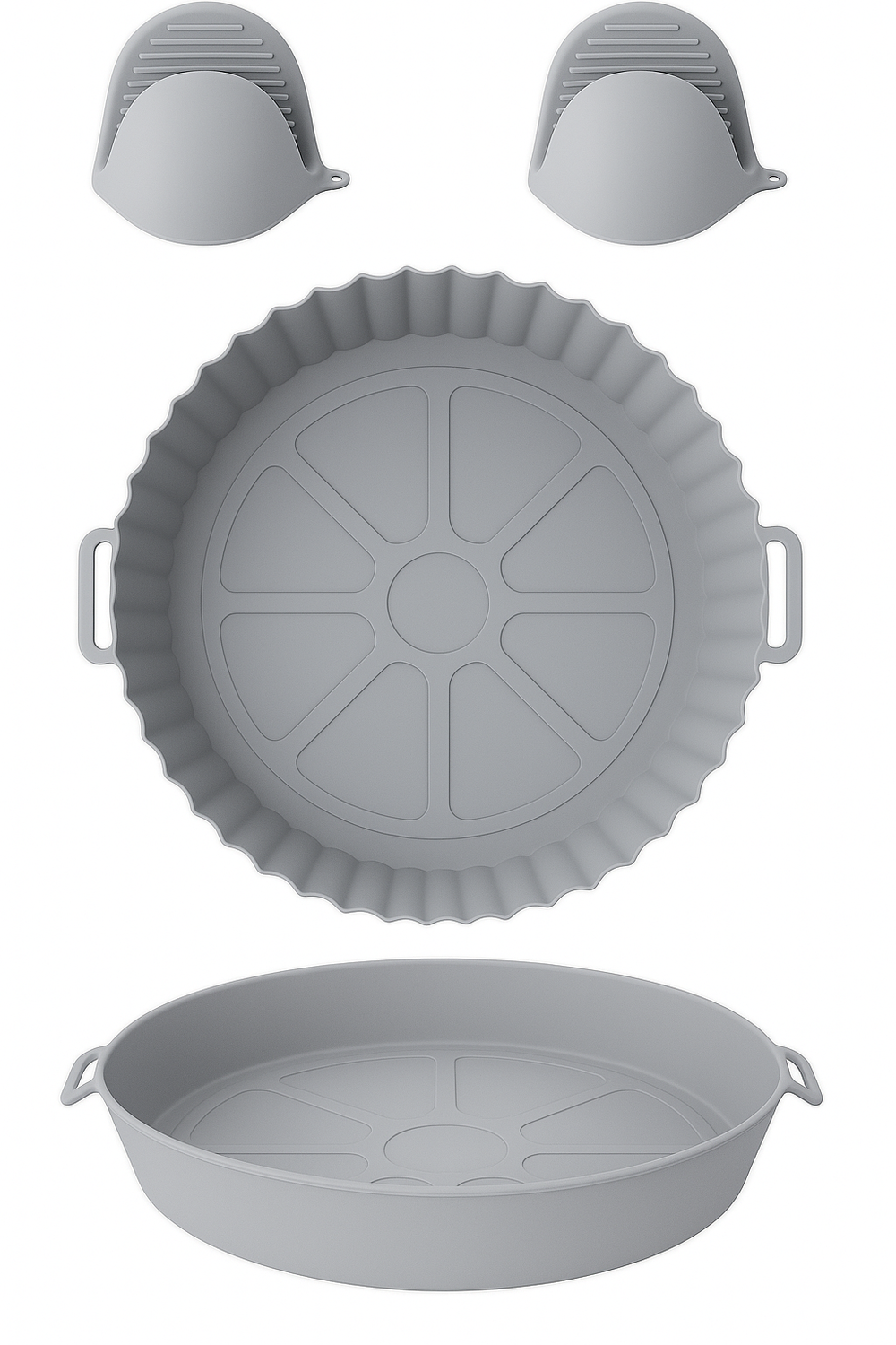 Beram Air Fryer Liner Round Grey Premium Reusable Non-Stick Silicone Baking Mat for Air Fryers Ovens and Microwaves Heat-Resistant Easy Clean Food-Grade Liner for Cooking Frying Roasting and Baking