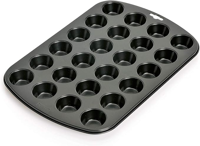 Beram Mini 24 Cup Cake Tray Black Non Stick Carbon Steel Muffin Pan Durable Oven Safe Bakeware Baking Tray for Cupcakes Muffins Brownies Cookies Pastry and Desserts