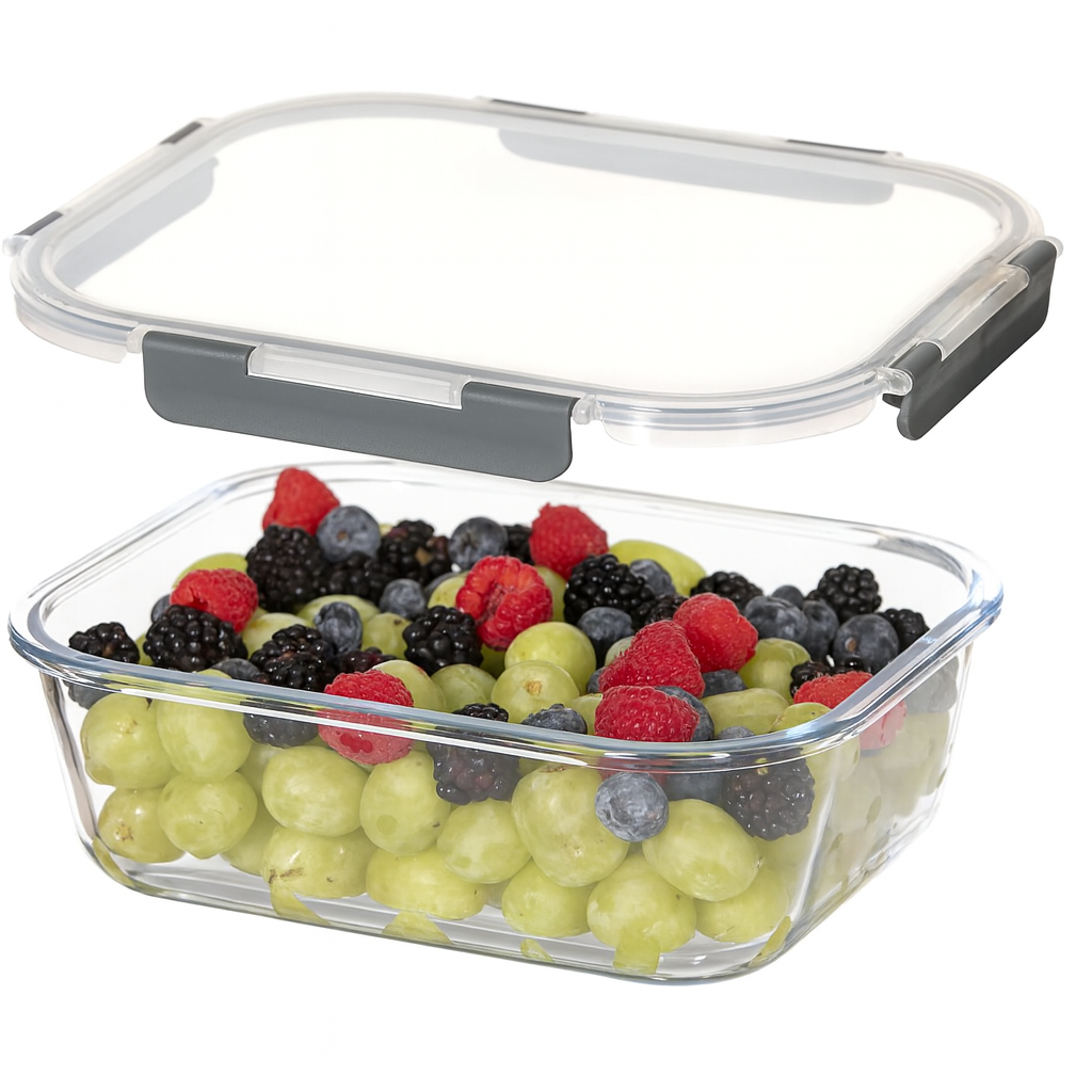 Beram Glass Food Storage Container with Lid 18.6×14.1×6.2 cm – Oven Safe Transparent Borosilicate Glass Box with Silicone Seal Airtight Leakproof Meal Prep Container for Oven Microwave Fridge & Freeze