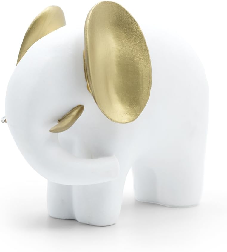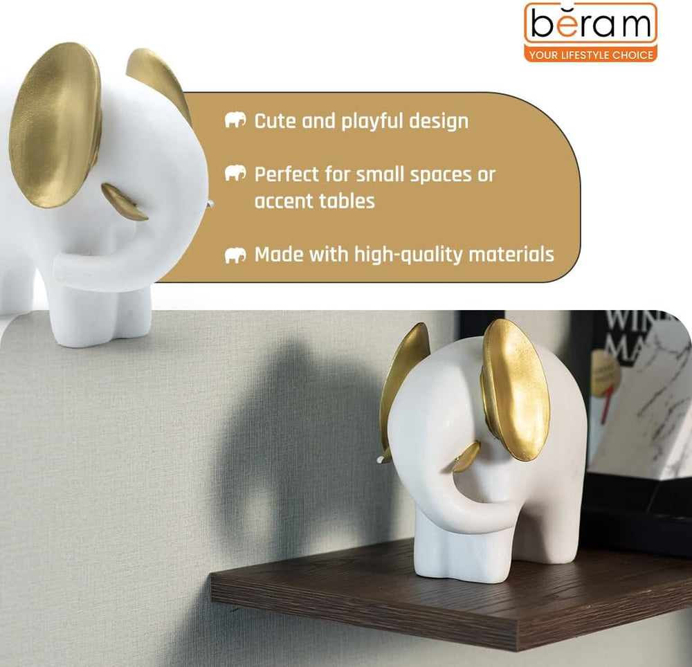 BERAM White & Gold Elephant Statue – Ceramic Art Sculpture for Modern Home Decor, Abstract Figurine Ornament for Office, Living Room, Shelf Display, Premium Gift for Elephant Lovers