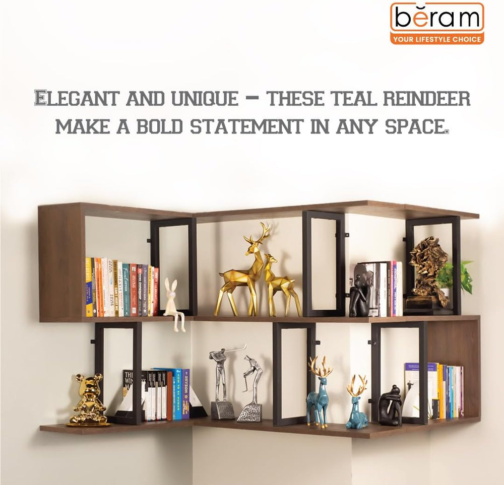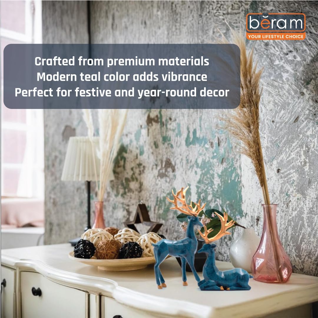 BERAM Teal Reindeer Set – Modern Abstract Reindeer Figurines for Home Decor, Shelf Stand Sculpture Ornaments for Living Room, Office, Dining Table, Mantel, or Holiday Display