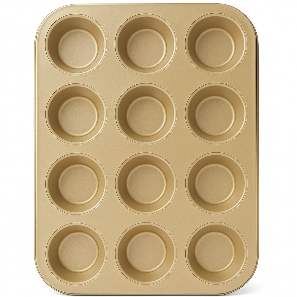 Beram 12 Cup Cake Tray Gold Non Stick Carbon Steel Muffin Pan Durable Oven Safe Bakeware Baking Mold Tray for Cupcakes Muffins Brownies Cookies Pastry and Desserts