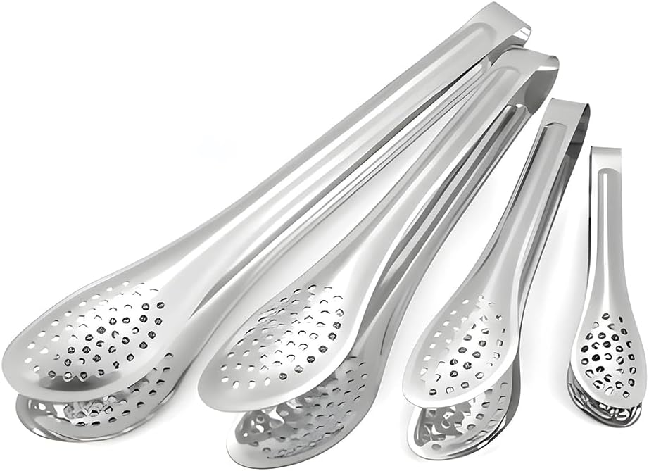 BERAM 304 Stainless Steel Tongs Set of 4 Sizes 6,7,9,12 inch Multipurpose Kitchen Tongs for Salad Toast BBQ Frying Buffet Steak and Food Serving Durable Non Slip Grip Metal Forceps Silver