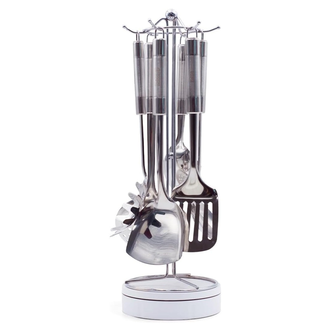 Upgrade your kitchen with the BERAM 6-Piece Stainless Steel Cooking Utensils Set with Stand. This set includes a turner, spatula, skimmer, rice scoop, pasta server, and soup ladle to cover all your cooking needs. Each utensil is made from durable, rust-resistant stainless steel with an elegant matte finish that resists fingerprints and watermarks. Ergonomic handles provide comfort and a secure grip while cooking. The included stand keeps all utensils organized and easily accessible, making your kitchen neat and efficient.