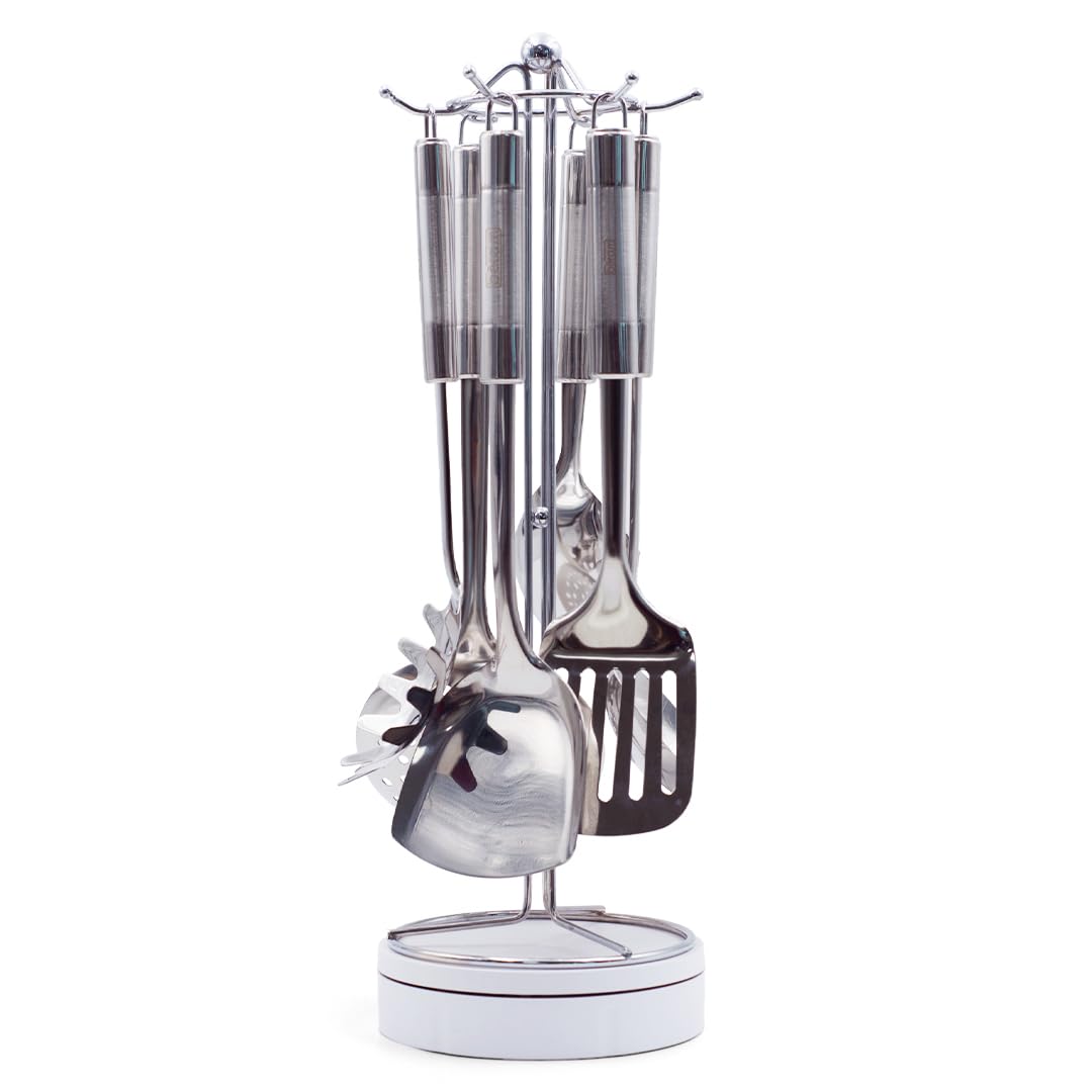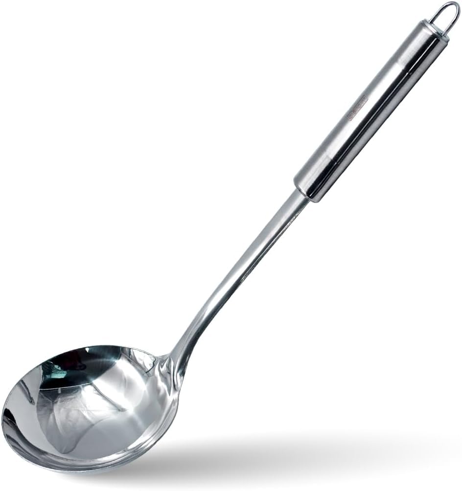 Upgrade your kitchen with the BERAM Stainless Steel Cooking Utensils Set – a professional-grade 6-piece collection that brings both function and style to your culinary routine. Whether you're stirring soup, scooping rice, flipping food, or serving pasta, this set includes all the essential tools you need: a turner, skimmer, spatula, rice scoop, pasta server, and soup ladle. Constructed from high-quality stainless steel, each utensil is built to last, offering exceptional durability, resistance to rust, and reliable performance even under high heat. The elegant matte finish not only looks great but also helps resist fingerprints and watermarks, making cleanup easier. Designed with the home chef in mind, these utensils feature ergonomic, easy-grip handles for comfort and control. Whether you're preparing a quick weeknight dinner or entertaining guests, the BERAM utensil set is a reliable companion in any kitchen.