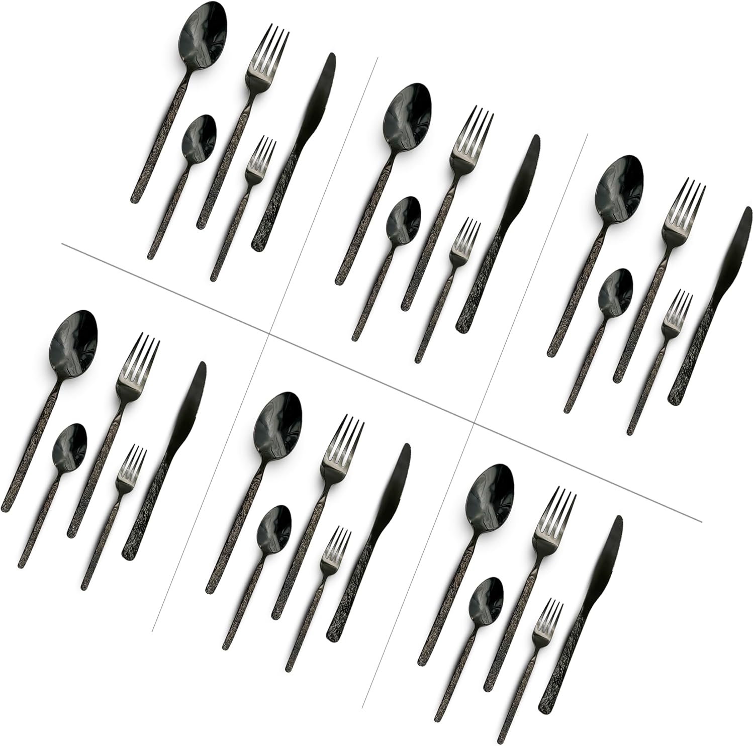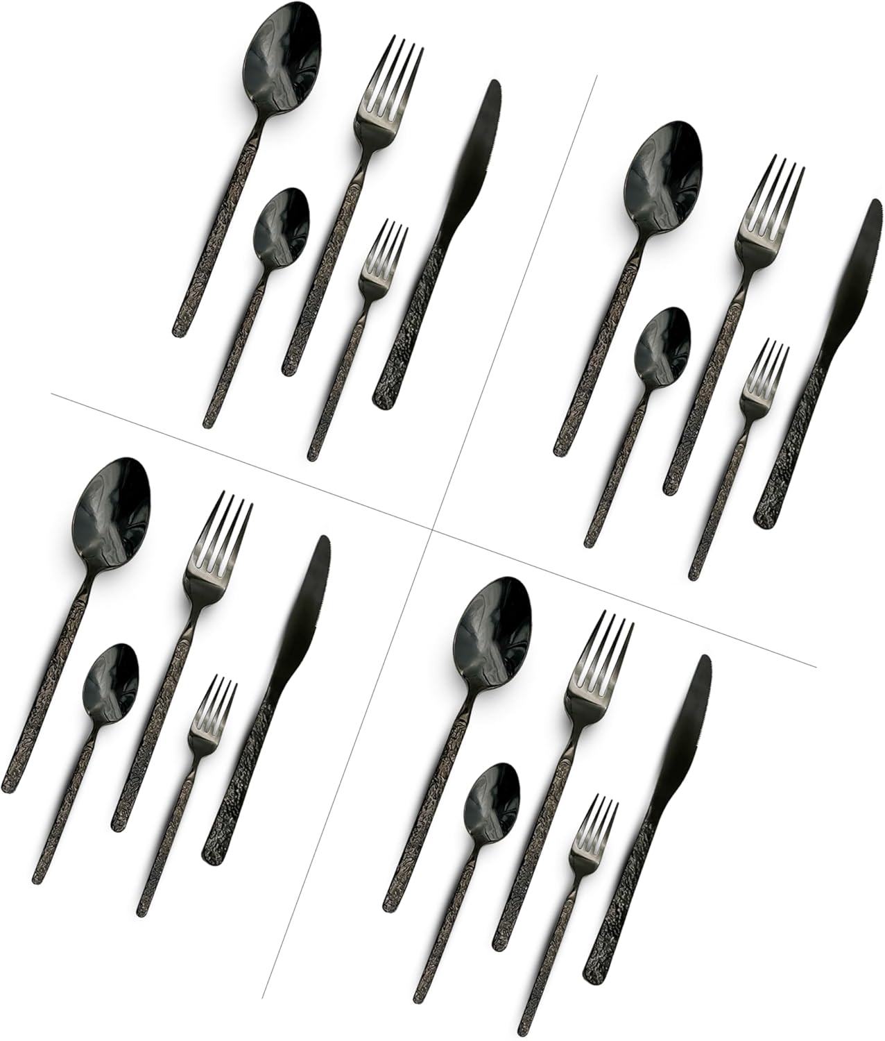 Each piece offers a smooth, ergonomic grip with a distinctive marble pattern that enhances your table setting. Resistant to rust and corrosion, the Dark Delight set promises lasting beauty and exceptional performance.