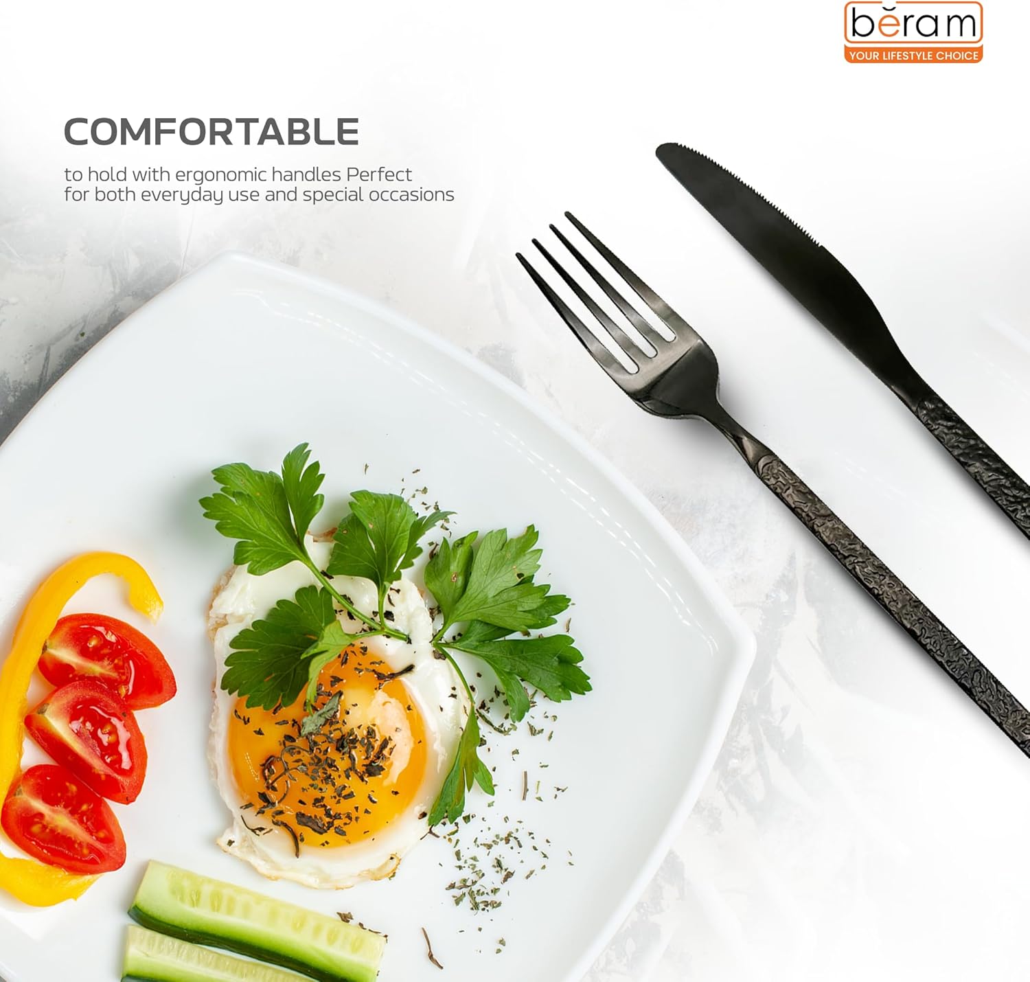 Add a touch of luxury to your dining experience with the BERAM Dark Delight Cutlery Set. This elegant 5-piece flatware collection features a stunning black marble finish over durable stainless steel, combining durability with sophisticated style. Perfectly balanced and designed for both everyday use and special occasions, this set is ideal for homes, restaurants, hotels, and catering services.