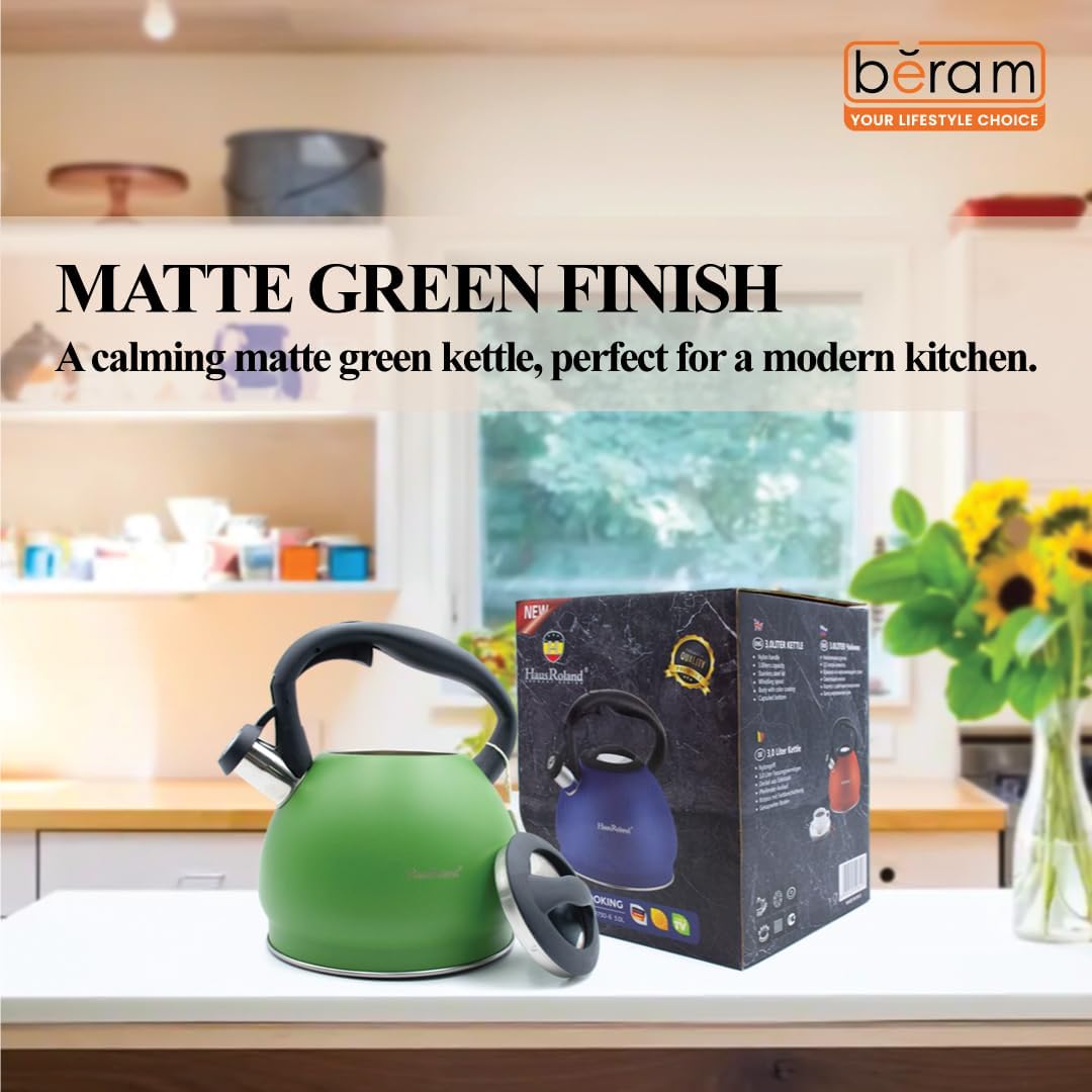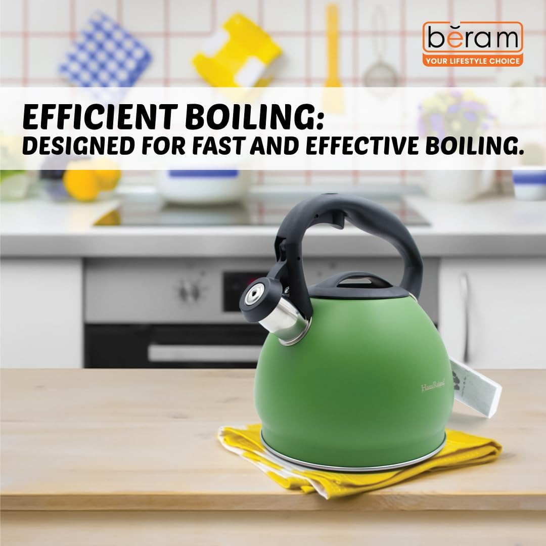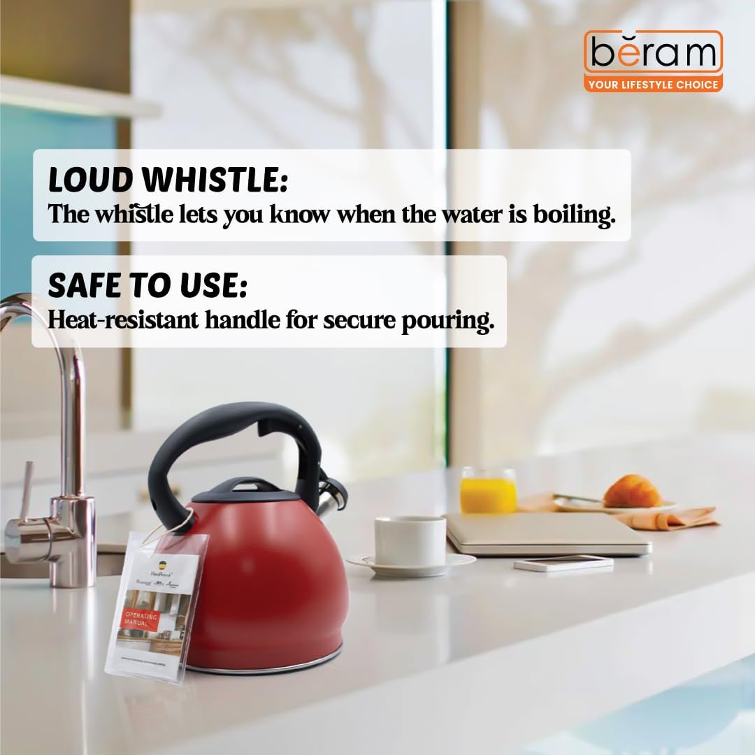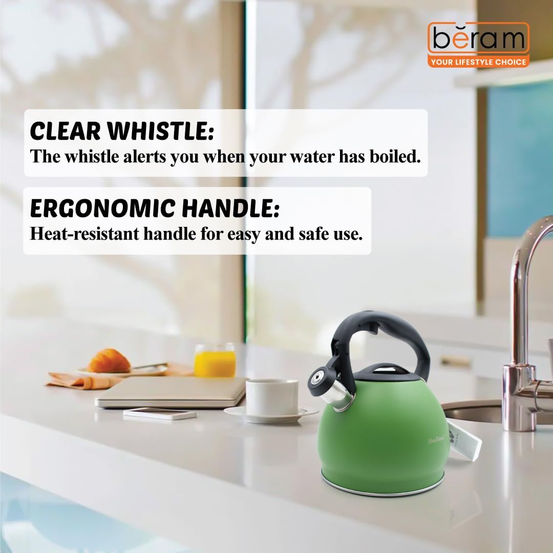 Experience the perfect blend of functionality and durability with this 3.5L Stainless Steel Whistling Kettle, designed to make your tea or coffee preparation effortless. Constructed from high-quality stainless steel, the thick and sturdy body ensures long-lasting performance, while the 5-layer metal bottom enhances thermal conductivity for fast, even heating. Whether you're using an induction, gas, electric, or radiant stovetop, this kettle is compatible with all, making it a versatile kitchen essential. The secure, tight-fitting lid locks in steam for rapid boiling, while the loud and clear whistle signals when your water is ready, allowing you to multitask without worry. Designed with convenience in mind, the kettle features an ergonomic, heat-resistant handle with a one-hand trigger mechanism, making pouring effortless and safe. For optimal longevity, use a medium heat source and wipe the kettle dry after use to prevent discoloration. With its sleek design, efficient performance, and safety features, this whistling kettle is the perfect companion for everyday tea and coffee lovers.