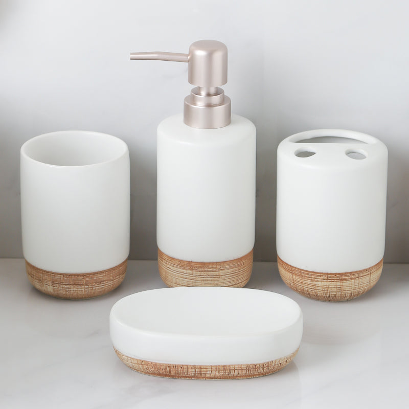 Elevate your bathroom with timeless elegance and thoughtful design using the Beram 4-Piece Ceramic Bathroom Accessory Set. Featuring a minimalist plain striped texture and a rustic matte finish, this set includes a soap dispenser, tumbler, toothbrush holder, and soap dish each crafted to bring harmony and function to your space.