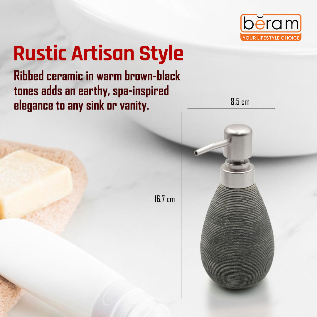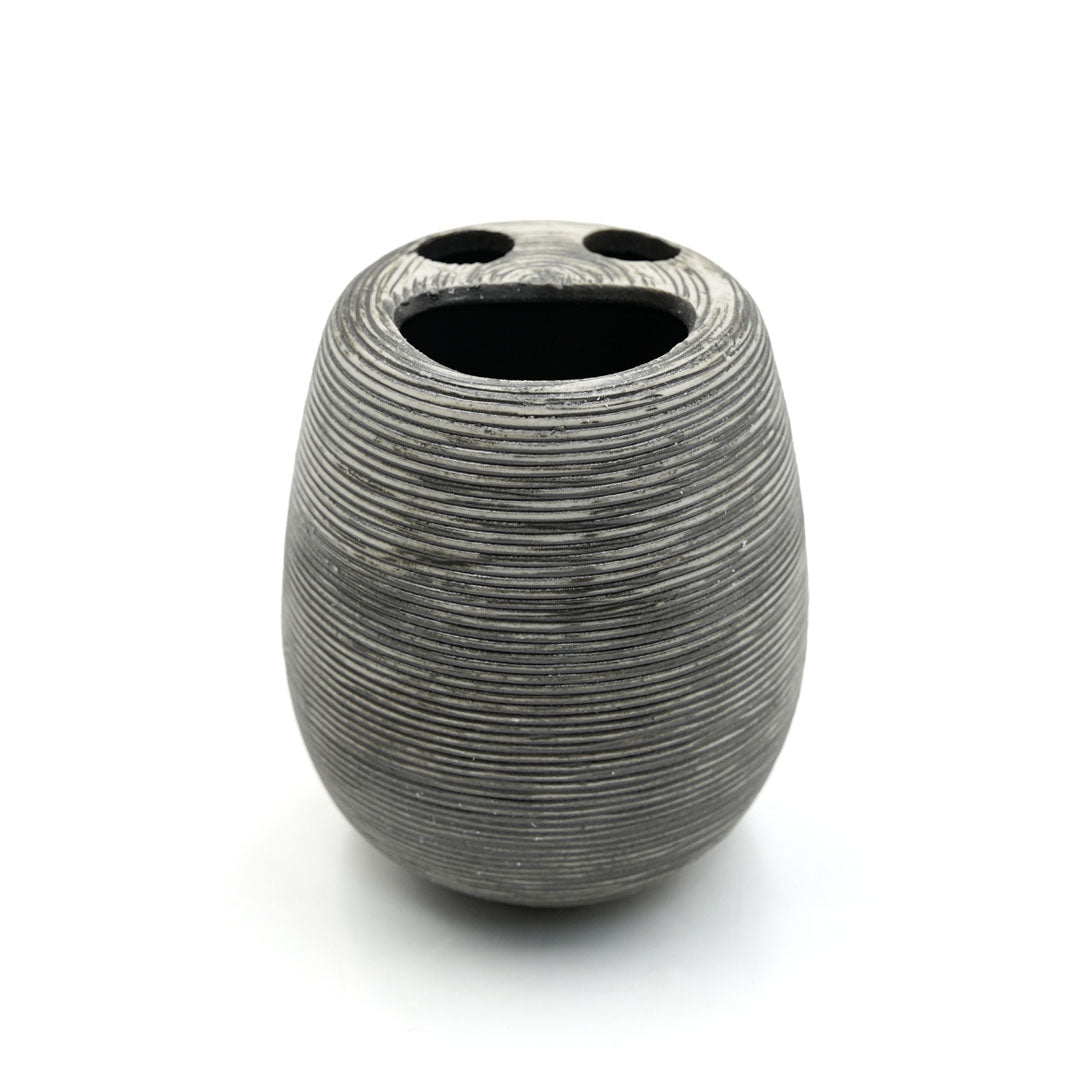 Add a touch of nature-inspired charm to your bathroom with the Stripes 5-Piece Black Ceramic Bathroom Accessory Set. Designed with a warm, earthy tone and wrapped in finely ridged texture, this set offers both functionality and artisanal beauty. Whether you're revamping your master bath or updating a guest bathroom, this coordinated set transforms your space with its rustic yet refined look.